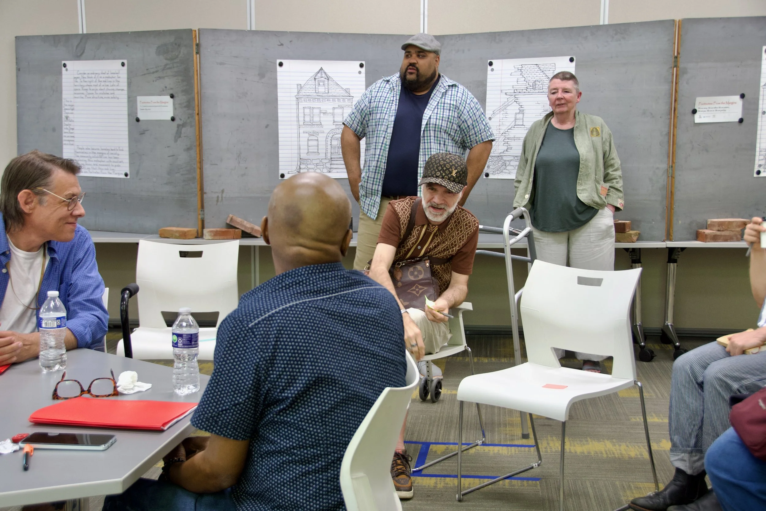 Footnotes has been performed regularly in the St. Louis area. It is part of several curricular programs i.e. Regional Arts Commission’s Community Arts Training institute, The Brown School for Social Work, Meramec Community College, Illinois Wesleyan University, and Leadership St. Louis. With each performance and with audience feedback, the script has grown and changed. The first script was 25 pages and took 40 minutes to perform. Since then, flexible versions and various runtimes can accommodate the addition of new stories and reach new audiences. The 2025 version of the performance was facilitated by artist and theater professional Carl Overly jr. with an eye to weaving together the past and the present, leaving room for future versions.