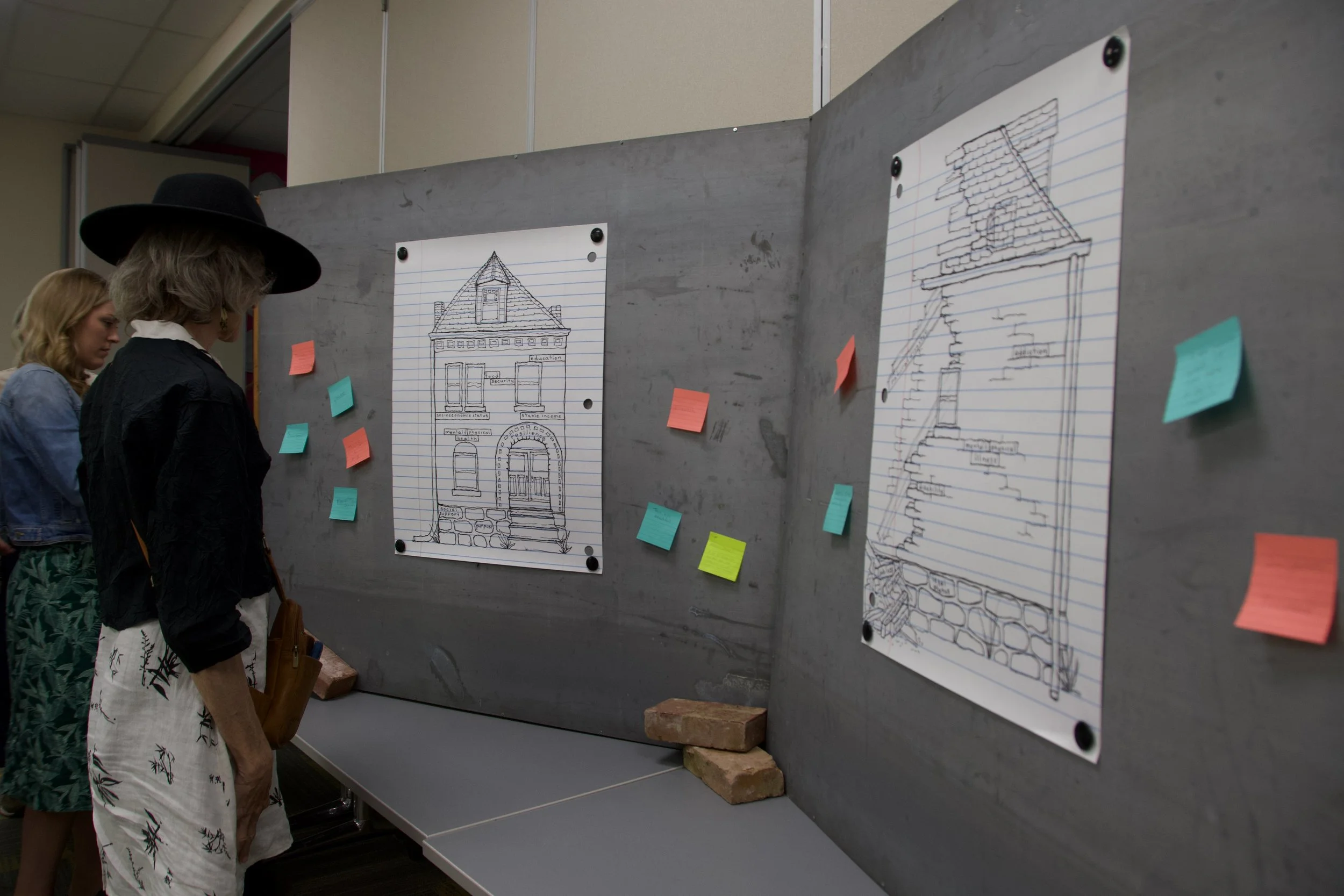 The big ideas area the same. Neighborhood stability, historic infrastructure, and recovery funding are important…the macro. We offer the micro lens of this exhibit—a metaphorical eye- of- the- camera— that you can use to think about these events and your ideas and the health and well being of our community.